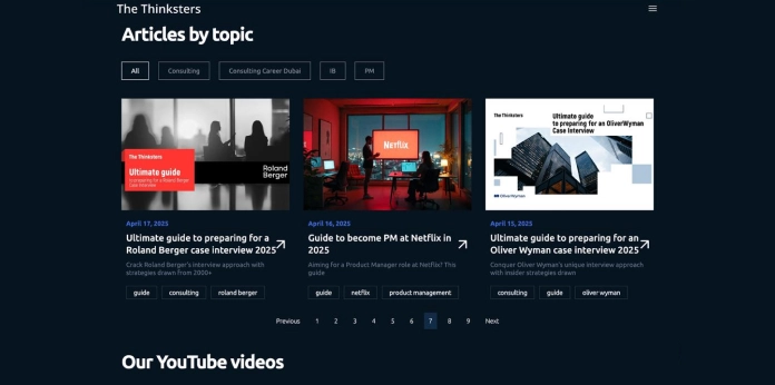 The Thinksters Pro – community is a interview-prep community designed to help top-talent candidates land offers at firms like McKinsey, Goldman Sachs, and Google. As a Pro member, you get access to structured video courses (covering IB, consulting, and PM), live masterclasses, mock interviews with expert feedback, curated templates, and direct coaching from former MBB consultants and finance professionals.