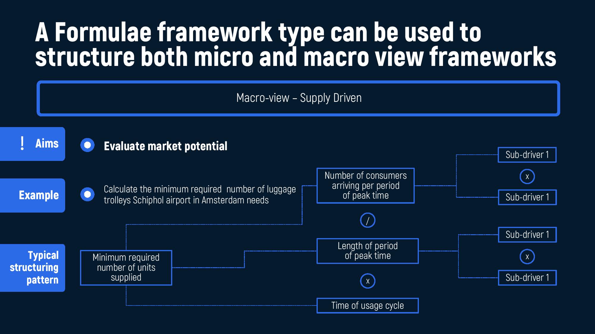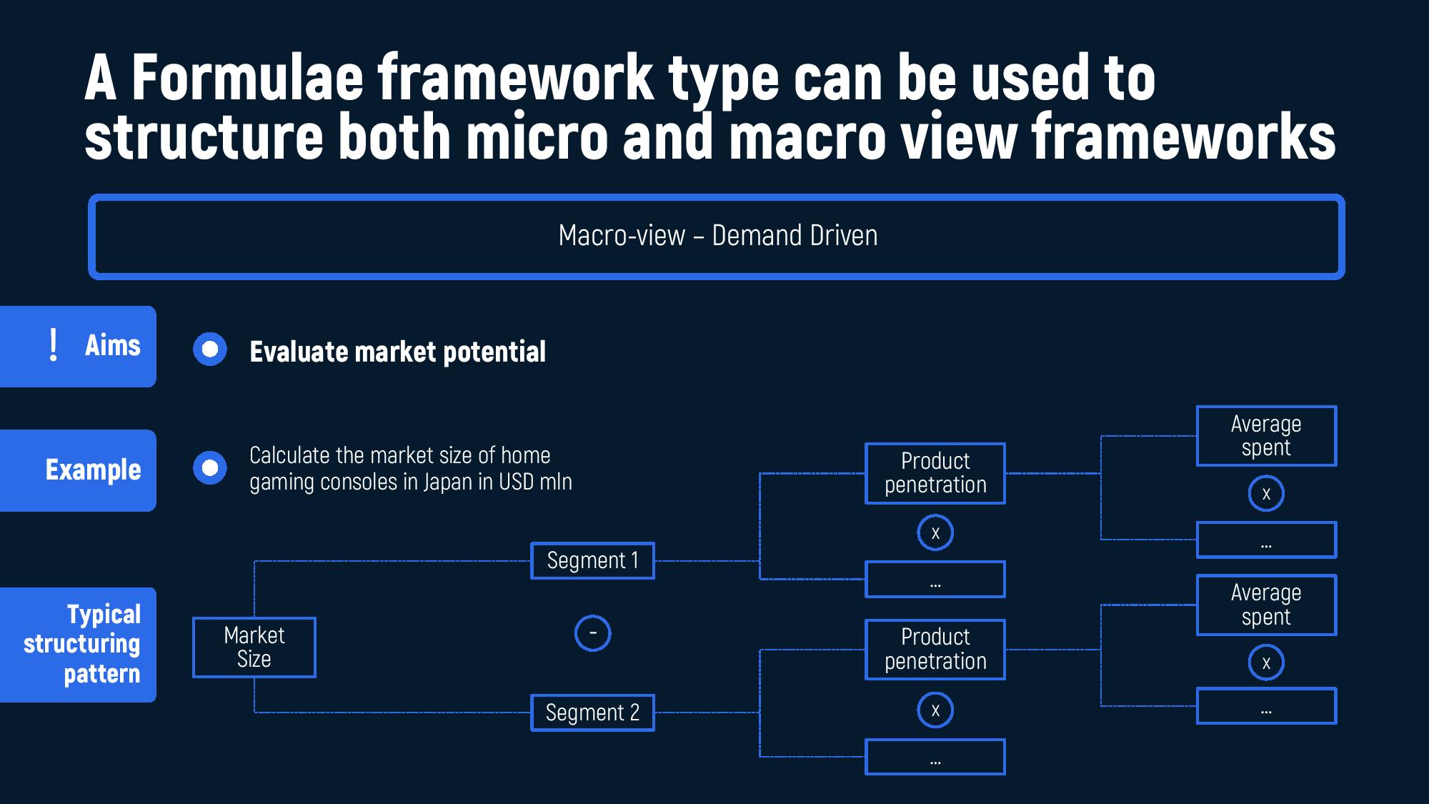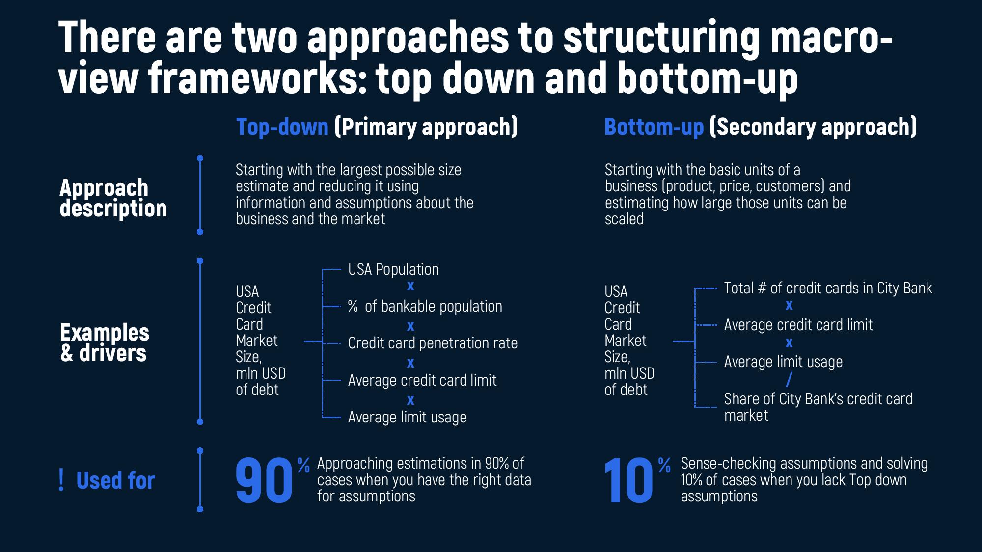 - Macro view covers market sizing cases, which can be demand-driven or supply-driven.