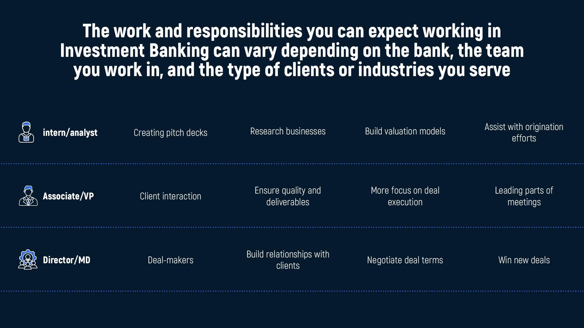 What kind of work can you expect in Investment Banking?