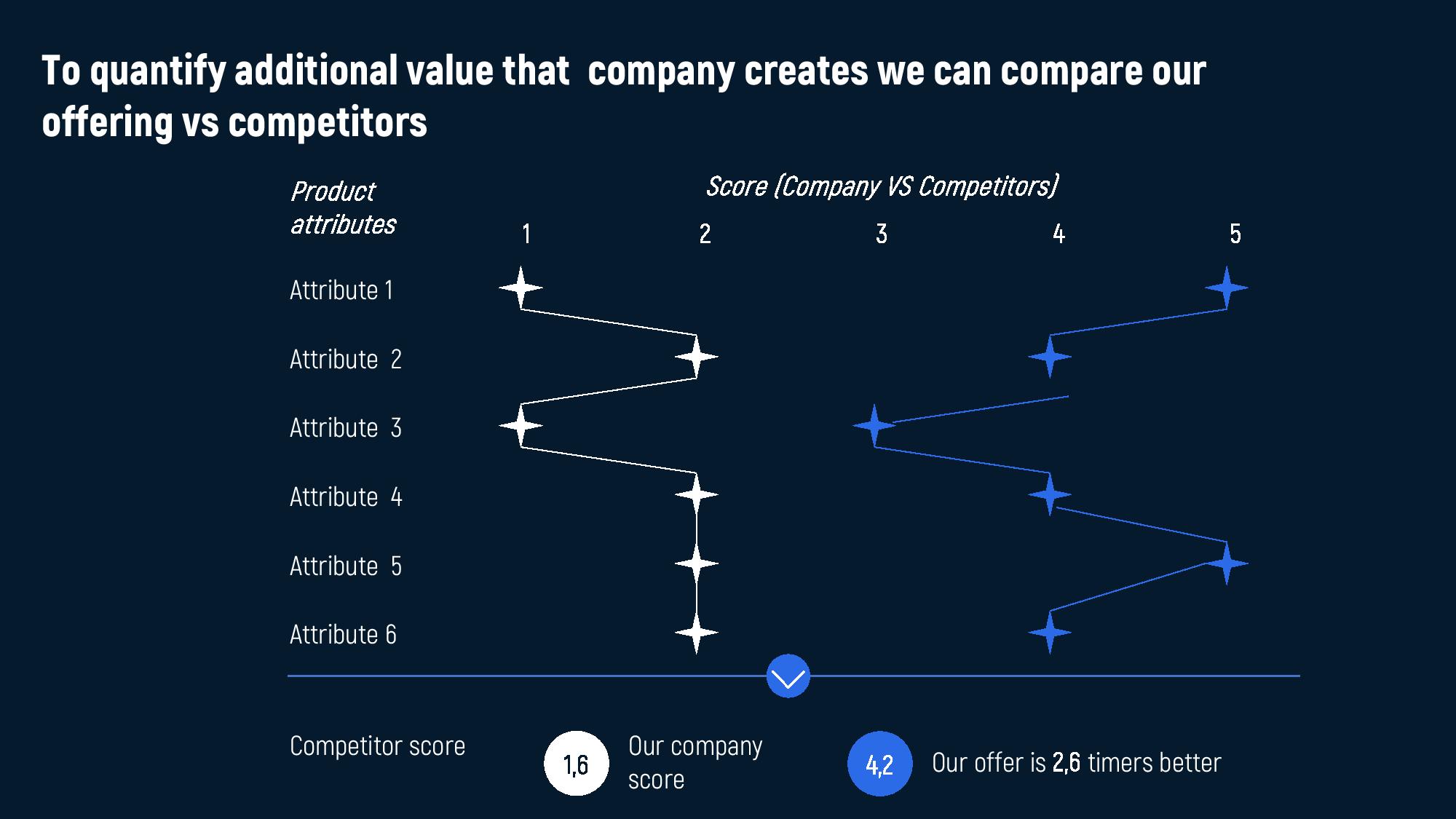 - Result: Our product is 2.6 times better in terms of customer-perceived attributes.