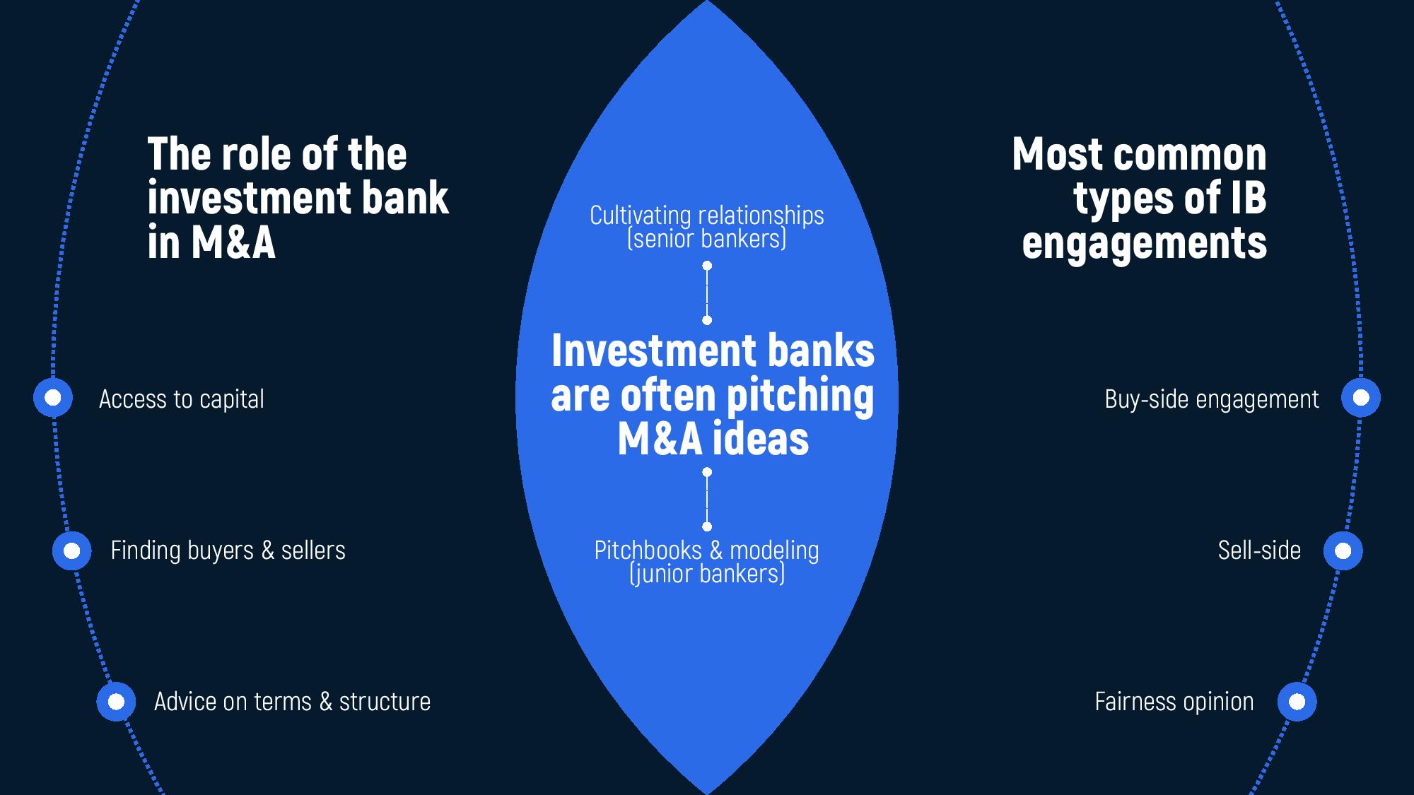 Identifying potential targets (buy-side) or buyers (sell-side). Investment banks leverage industry knowledge, client relationships, and market screening tools to generate opportunities.